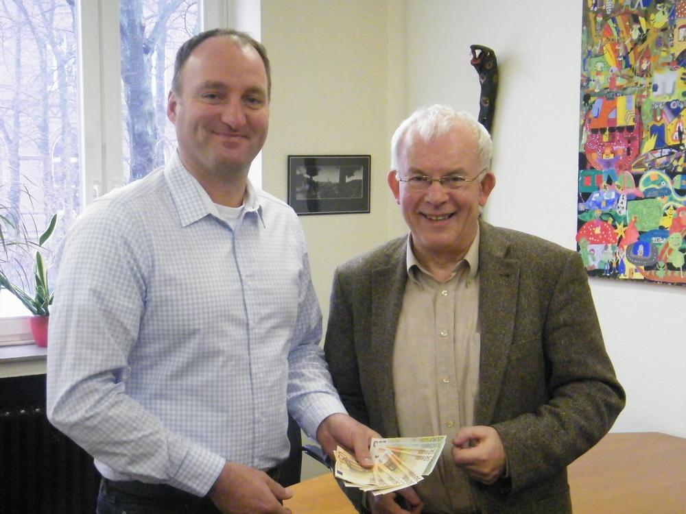 Münster-Hiltrup - Die Einbrecher sind mittlerweile gefasst, der Schaden durch  die Einbruchsserie im Sommer und im Herbst ist noch lange nicht behoben. Deshalb  freute sich KvG-Schulleiter Paul Thelosen gestern über eine Spende in Höhe von  750 Euro, die ihm Joachim Schilling überreichte. Der Hiltruper Getränkehändler  und Vater zweier Kinder, die auf das KvG gehen, hatte unmittelbar vor  Weihnachten ein kleines Fest und eine große Tombola zugunsten des KvGs  organisiert. 150 Gäste kamen, die Bläsergruppe spielte und die Tombola war mit  einer Ballonfahrt, GOP-Gutscheinen, einem Kühlschrank und andere Sachspenden  gut bestückt. Die Spende wird dem Förderverein der Schule zur Verfügung  gestellt.